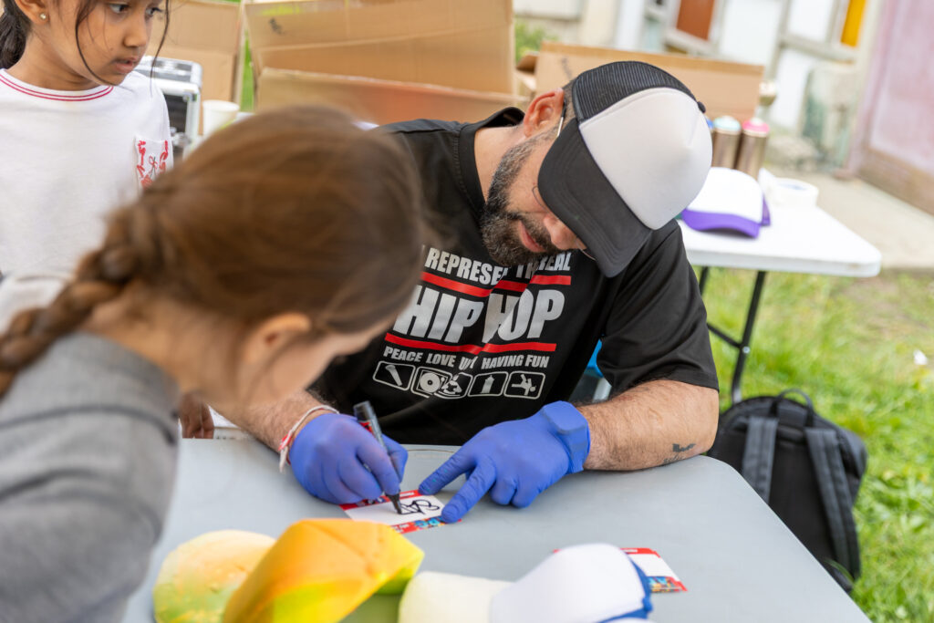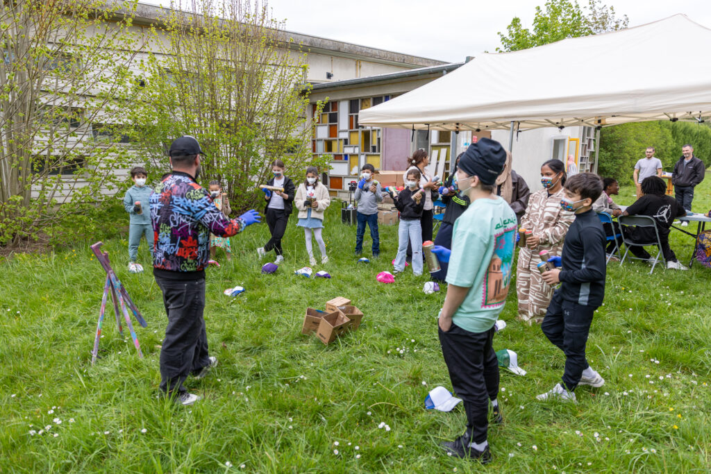 Un grand merci à l’artiste graffer Perse pour sa présence et son engagement. Anciennement accompagné par l’association, c’est une véritable fierté pour les équipes de le voir aujourd’hui transmettre sa passion, devenue son métier.